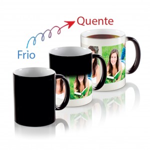 A caneca mágica é um produto no qual a personalização é ativada através do calor da bebida servida. Basta colocar líquido quente que a arte, ou melhor, a mágica aparece.